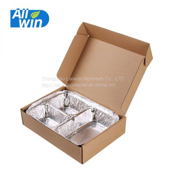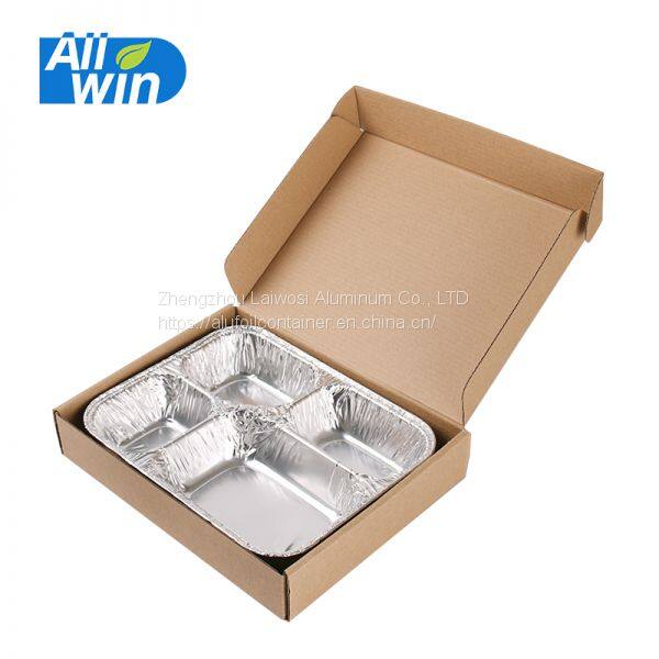 Food Lunch Box 4 Compartment Rectangular Disposable Aluminum Foil Container