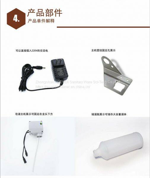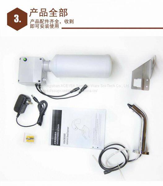 Zhongshan ACEYEA Sanitary Ware Co., Ltd. is a professional manufacturer of intelligent bathroom appliances, the company introduced the United States and Germany technology. With the United States, Germany, the United Kingdom, Canada, Hong Kong, Taiwan and other customers to supply and develop a new tap-type sensor soap. The products are newly designed by American designers, and their products are sold at home and abroad. The company's products are the cooperative suppliers of many well-known brand enterprises. The products are currently used by Baidu, Ocean Real Estate, Times Real Estate, Henglong Real Estate, Erie, Mengniu, Hilton Hotel, Vienna Hotel, Daoxiang Hotel, Guangzhou Zhou Dafu Financial Center, Shanghai American College and other world-renowned enterprises. Products are widely used in office buildings, shopping malls, plazas, hospitals, stations, airports, hotels and other commercial places.This product adopts infrared automatic induction technology, and can automatically induce soap liquid. Every time the soap dispenser is quantified, the waste of hand washing liquid can be avoided. The product is installed by faucet type, which can ensure that the excess hand washing liquid falls into the basin to avoid the common soap droplets dirty on the table surface and corrosion of the table surface. Our products are all made of brass chrome plating. The products are made of advanced multi-layer plating technology, which can ensure the durable brightness of the products. The product uses the Sino US technology development soap liquid pump, the service life is long, the sound is low, the power consumption is small and so on. At present, our products are widely used in many high-grade commercial public health places at home and abroad. Our products are also exported to the United States, Canada, Turkey, India, Malaysia, Singapore, Hong Kong, Taiwan and other places. We have the cooperation of agents and distributors in the United States, Turkey, India and other markets, so that good quality can be established for a long time. Cooperative relationship, we welcome the domestic distribution partners, business partners to establish long-term business relations with us. We will provide perfect pre-sale and after-sales service. You are welcome to contact us anytime!We promise that we will provide 2 years free warranty for products purchased in our store. The damaged product is free of repair within 2 years, free of charge and replacement of related parts. The customers in Guangdong provide mail delivery and spare parts maintenance. The main part of the product offers 5 years of quality assurance. Non-human damage for 5 years free replacement! We welcome all major businesses to buy and sell our products.