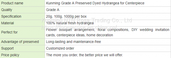 Kunming Grade A Preserved Dyed Hydrangea for Centerpiece