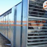 Manure is cleaned and discharged by the Polypropylene (PP) manure belts of 1.10 mm thickness.These PP belts are located underneath every tier and row of the cages and towed by drive reducer engines to clean the manure in a flawless way.This strong and robust construction is operated without problem even in very long hen houses.Rollers and the scrapers located on each tier and row spills the manure to the discharging manure conveyor at the end of the hen-house and the manure is removed from the hen-house by this discharging manure conveyor.A cover has been placed at back of the manure belts for avoid splashing and not to make dirty hen house and transfer the manure to the conveyor as dandy.The manure belt is made of white PP product which made in Italy,the best quality we can get all over the world now. The belt system is consisting of front cap rollers stretching and internal scrapping off apparatus as well as the rear scrapping off rollers, pressing balls,external scrapping off apparatus, conveyor drive systems and the electrical reducer engines.