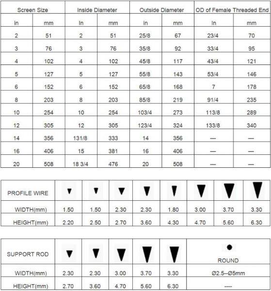The support wires can be round wires, triangular wires or trapezoidal wires, while the filter wires is triangular wires(V shape wires).