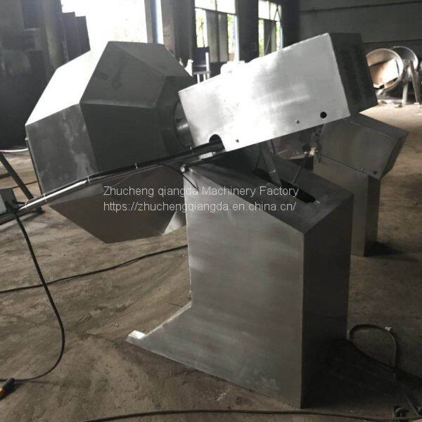 The octagon mixer can be used for seasoning fried food, peanut, soybean, walnut, potato chips, etc. vegetable and octagonal seasoning mixing machine can make the processing food and seasoning mix uniformly in 5-6minutes. Octagonal seasoning mixing machine can discharge the food by inclining automatically; Octagonal seasoning mixing machine has character of low noise through working and beautiful appearance.