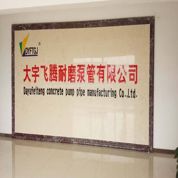 Hebei Dayufeiteng Wear-resisting Pipeline Fittings Co., Ltd. is first professional concrete pump pipe and spare parts manufacturer in China which is a complex of "production, development, research". It covers an area of 20,000 square meters in total.The workshop building is 12,000 square meters.