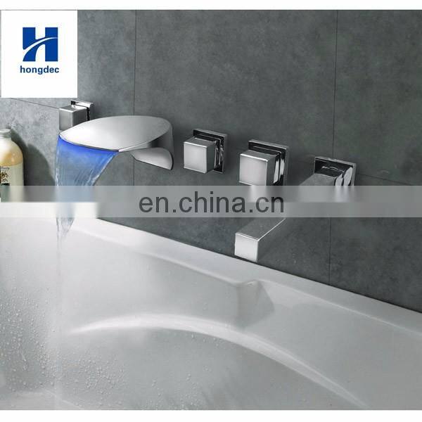 Home > Products > Basin Faucet > Bathroom Wall Mount Bathtub LED Widespread Waterfall Bathtub Faucet Set