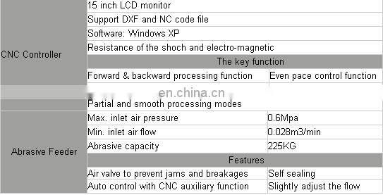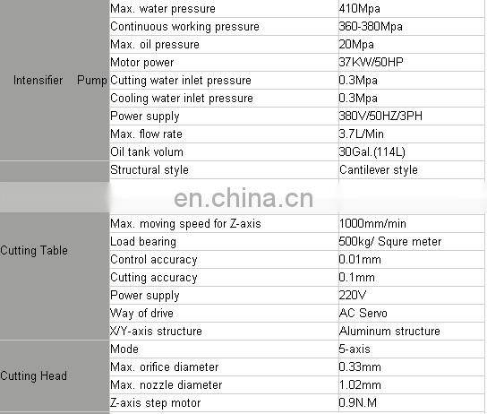 The technical parameters for cnc waterjet cutting machine showing in the following chart: