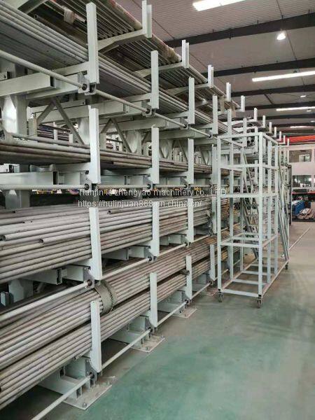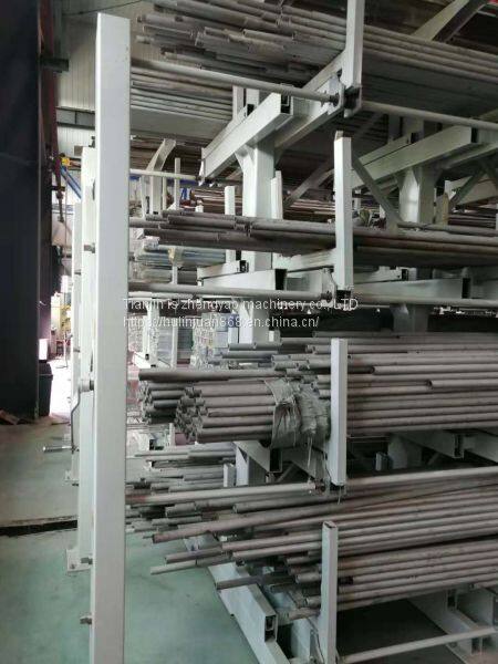 Five layer pipe rack in the form of multilayer storage to store the pipe material, a set of shelves can be made into 5 layers, each layer can be one store and double deposit, each layer of 8 tons, a group can hold 40 tons of steel tube, super large storage, can only take up a layer of the goods but can improve the storage capacity of 5 times. Completely solve the problem of pipe because of the space is little low amount.
