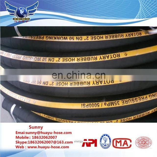 Drilling rotary and vibrator hoses (High Pressure Drilling Hoses) are designed as API 7K Spec as the flexible connection between the standpipe and swivel for pumping mud at a very high pressure in oil drilling and exploration. This hose features high strength spiral steel wire reinforcement which provides a very flexible connection capable of withstanding high pumping pressures at API working pressures, also called mud hose, cement hose, kelly hose or shock-resistant hose.