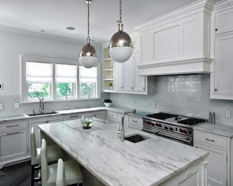 American Style Classic Solid Wood Kitchen Cabinet With Marble Top