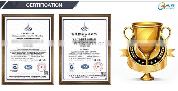 Hebei Jiuqiang Rubber pipe Industry Co., Ltd. was founded in 1998, located in the southeast of Hebei Province, occupying a very superior geographical advantage. Our factory is ISO9001 international quality management system certification enterprise. We have strong technical force, advanced technology and equipment, complete testing and analysis instruments and perfect detection means. We mainly produces