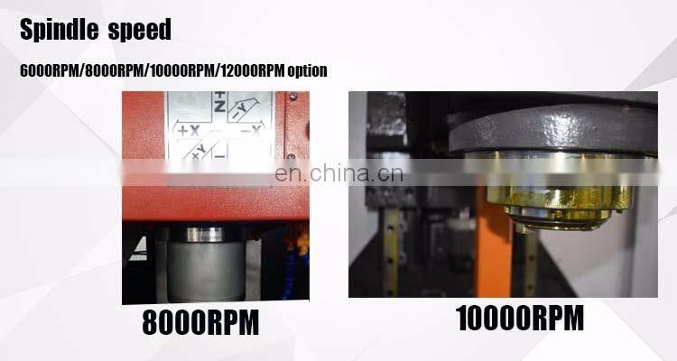 It is vertical machining center with X, Y, Z axis controlled by servo motor directly. The three axis are all the steel ball rolling linear guide rail which is large load capacity, wide span and high precision. XY axis is 35mm overloading and Z axis is 45mm overloading .Compact and reasonable structure and dimensions. Spindle is driven by servo motor through synchronous belt.