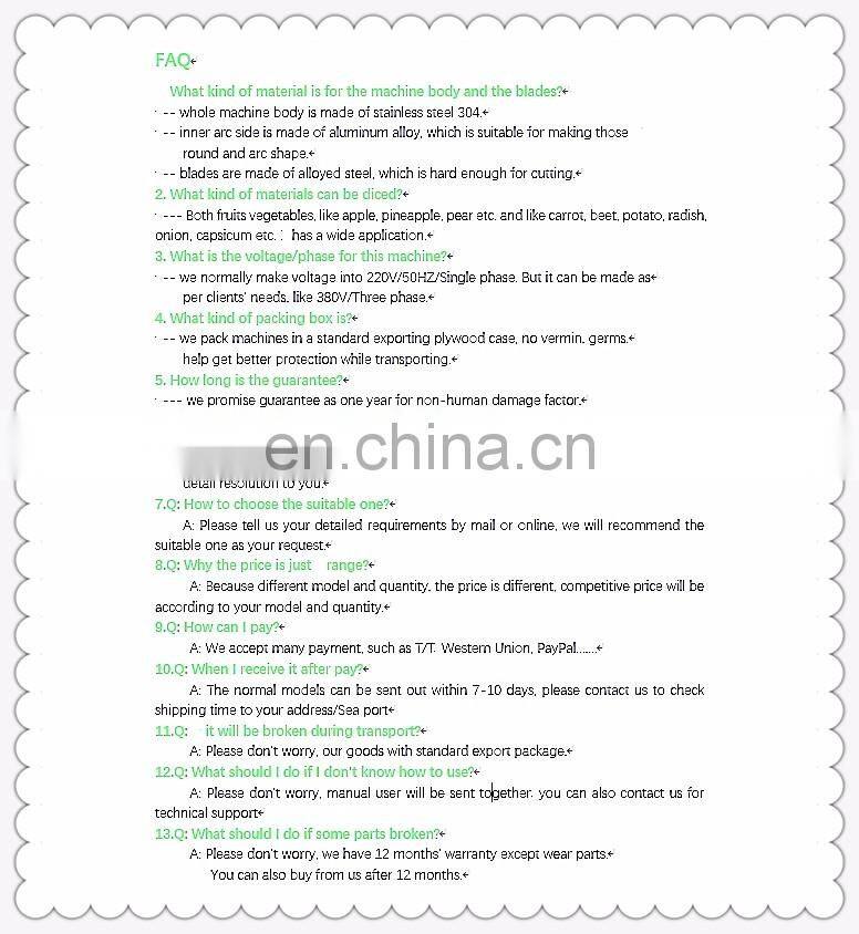 * one year guarantee for whole machine except of wearing parts (blades, ect)