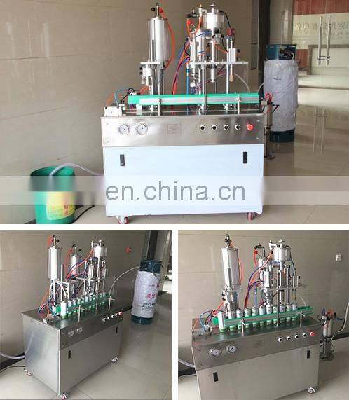 It is suitable for filling various media and producing various aerosol chemical products. Specialized technical design saves people and time. The filling head is controlled independently and can-free, while the inflatable head is guided with accurate measurement, high efficiency and little air consumption. It is widely used in experimental household production and chemical laboratory equipment. It includes aerosol products such as food, medicine, hygiene, automobile, environmental protection, fire fighting and daily necessities.