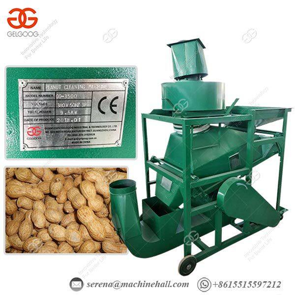 The peanut-containing peanuts flow from the feed hopper into the sorting screen, and the debris and floating dust containing the peanuts are sucked out of the machine under the action of the crankshaft and the suction fan. The heavy impurities are sorted through a sorting sieve, and flow out from the sieve surface to the exhaust port. The depleted peanut fruit flows from the screen surface through the discharge port into the air transport device and is transported to the hopper of the shelling system.