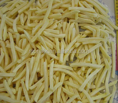 Bubbling pool or soak washing machine, peeling machine, sorting conveyor, hoist cuts, potato dicer, hoist pick, pick conveyor, potato blanching machine, vibration sieve, frozen hoist with Freezer machines. The production line can produce potato chips, French fries, potato pieces and other frozen potato products.