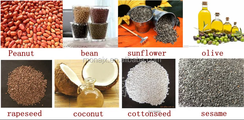 used Peanuts, rice bran, sesame, oil palm fruit, soybean, canola, tung tree seeds, corn, Chinese tallow tree seeds, pepper seeds, cottonseed, sunflower, rapeseed