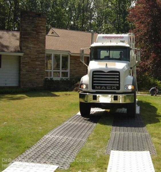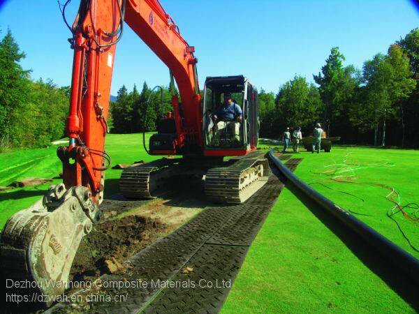 Our company’s HDPE board temporary road mats aims at offering you the most effective ground protection system that does the job every day.Ground protection mats is durable , light weight , and extremely strong .The mats are engineered to provide ground protection and access over soft surface and will provide a firm support base and traction for numerous activities . Ground protection mats are great to save heavy vehicles from getting stuck in mud.These advantages of HDPE Grass protection mat let them have longer service life.