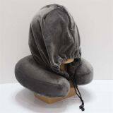Traveling Equipment Sleep Well Hoodie Travel Memory Foam Neck Pillow Cotton Cover