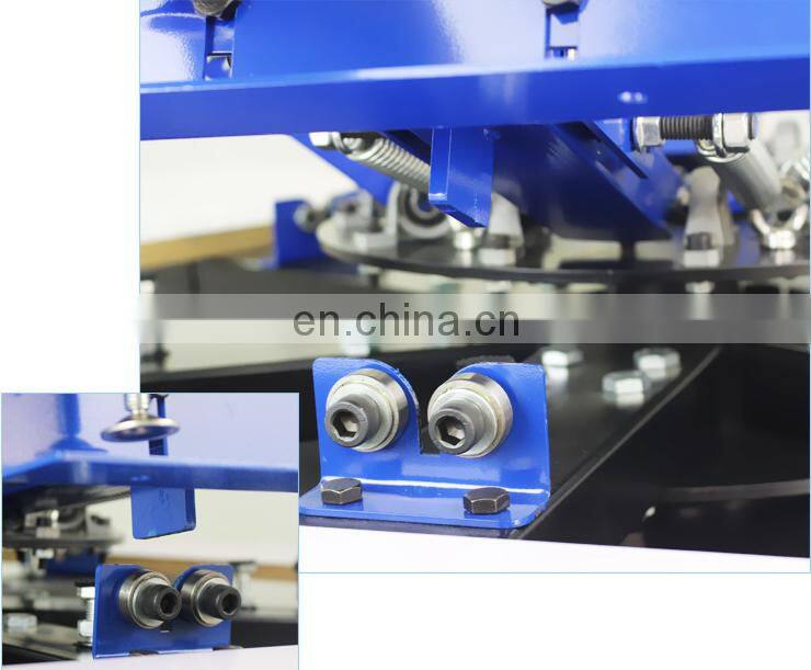 This Manual 6 color 6 station t-shirt screen printing machine is widly used in textile/garment screen printing industry, such as garments, T-shirts and sport cloths, bags, PVC and so on. this screen printing machine is suitable for clothing overprinting. It is widely used to overprint T-shirts, clothing, backpacks, leather, cloth, towel and many other items. Cooperating with far infrared dryer can improve overprinting working effect.it is characterized by accurate positioning,saving room,saving labor and other advantages.it is particularly suitable for t-shirt shop, small business and individual printing shop etc.