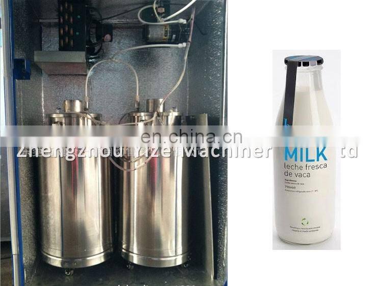 You put fresh milk into the machine and turn it on, then it can sell milk automatically. Automatic refrigeration system inside the machine, in order to keep milk fresh for a certain time in such a low temperature condition. For customers, they should take bottles themselves to the machine, insert a coin or swipe IC card, secondslater, they can get a bottle of milk they want. Self-adjusted unit price, cheap and convenient popular milk vending machine Suitable