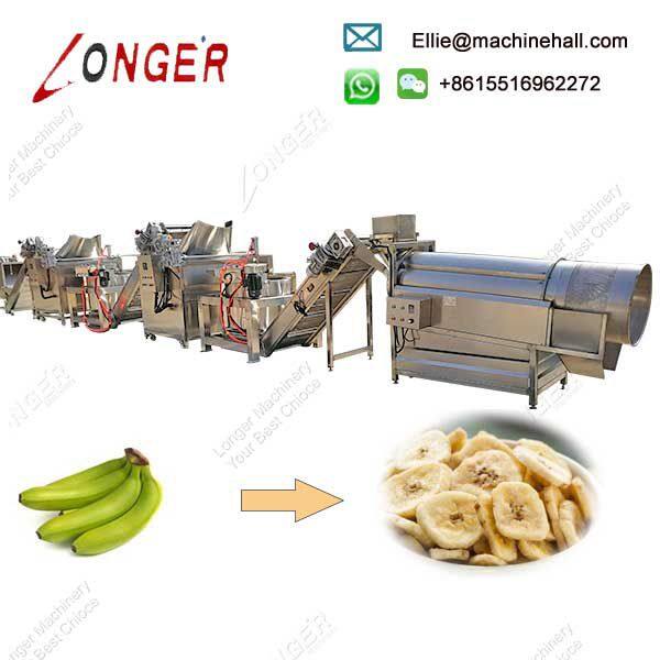 Banana chips production line is absorbing the essence of similar products,retains the advantages of large equipment for enrichment,designs and develops this plant based on the user feedback information all over the country.Has a low one-time investment,low energy consumption,multifunction,small volume,high profit,more convenient to use and repair etc. A full set of banana chips processing line consists of slicing machine, blanching machine, dewatering machine, water-oil mixed frying machine, deoiling machine, seasoning machine, packaging equipment.