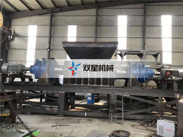 Shuangxing shredding machine consists of motor,reducer,rotating knife shaft ,import knife, knife, frame, frame, body, such as the main structure, because it is a claw type moving blade, rotary cutting, after heat treatment the hardness of HRC60 ° above, so the service life is long, strong cutting ability, high capacity, the normal use of 10000 tons more than just need to sharpen, collocation of conveyor belt, separator, nylon separator, secondary crusher, and steel wire mill is used, along with all the so of automation, rationalization and ShengLiHua, effectively reduce the labor intensity, improve the working environment