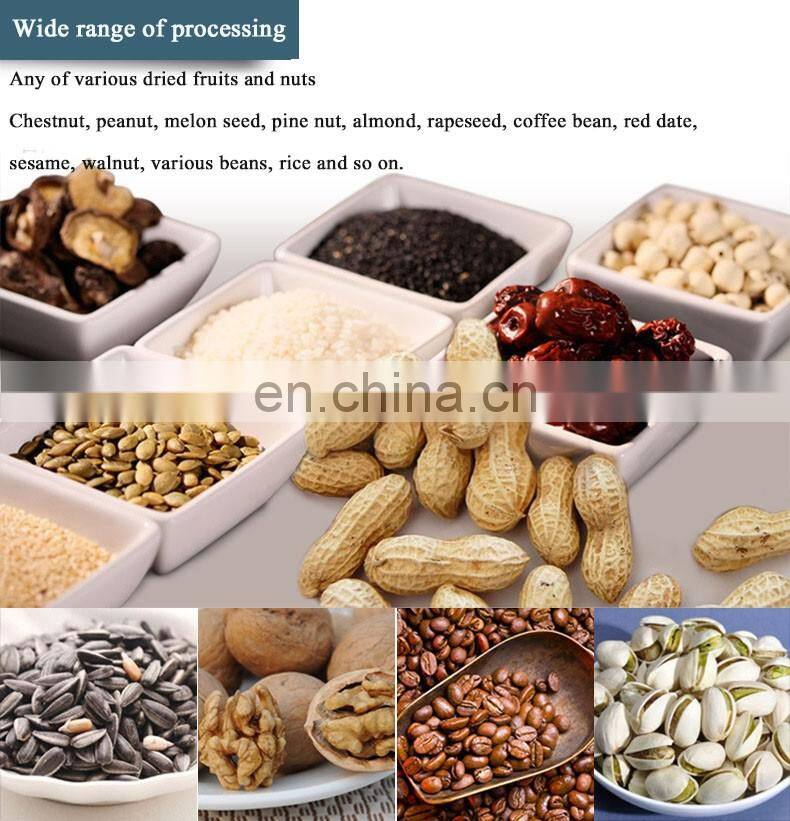 Made of stainless steel rolling pressure is turned into, stable mechanical properties, adopting closed belt transmission, rational layout, low power consumption, high efficiency, safety, hygiene, this machine is easy to operate, mixing evenly, nuts to the clockwise rotation is normal, the counterclockwise rotation of raw material and sand, out raw material and sand automatic separation, very convenient, fry the food that is nice and delicious, is good helper of people's business.