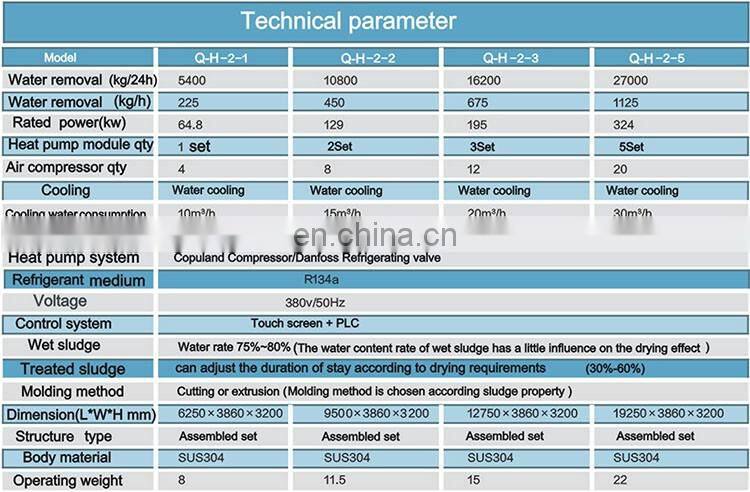 4.It is running in a full sealed device with low temperature 50-75℃. Sludge is in granules after drying, almost no dust will generate.