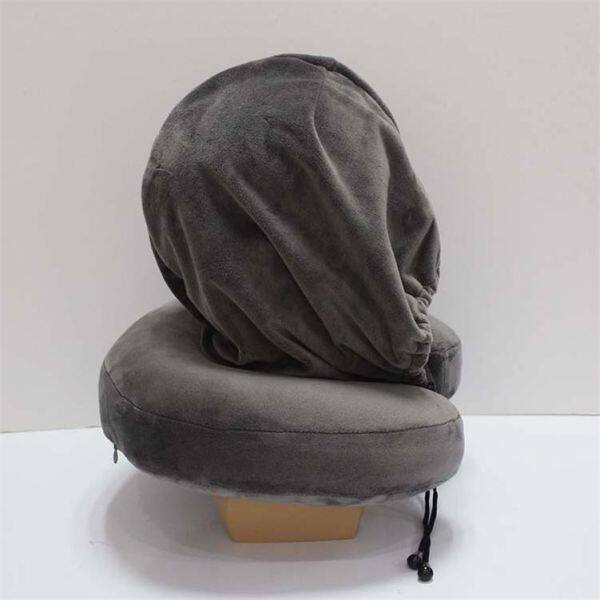 Traveling Equipment Sleep Well Hoodie Travel Memory Foam Neck Pillow Cotton Cover
