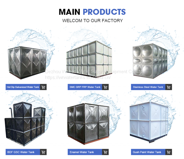 | SMC GRP FRP water tanks | Stainless steel water tanks | Hot dip galvanized water tanks | Enameled water tanks |