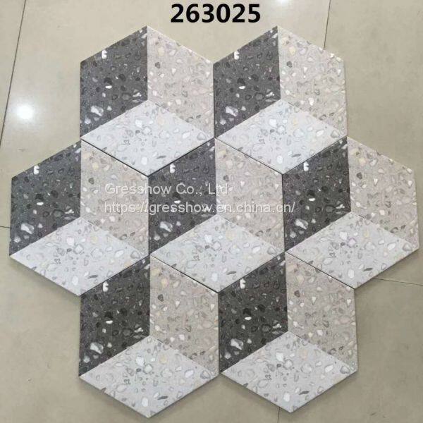 Home > Products > Hexagon Tile 260x300mm > 10''x23'' Terrazzo Patchwork Matte Honeycomb Tile
