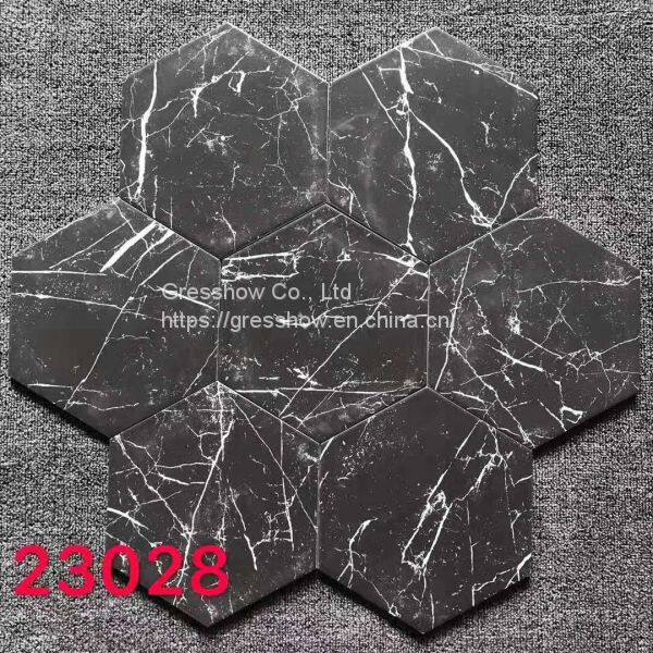 | Product Name | 200x230mm Marble Design White Veins Black Hex Tile |