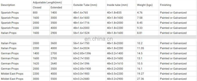 Adjustable Steel Prop With Painted and Galvanized Surface Treatment