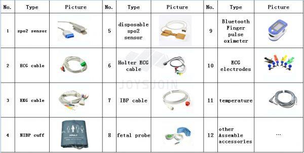 | NIBP cuff | IBP cable | Temperature Probe | toco probe |