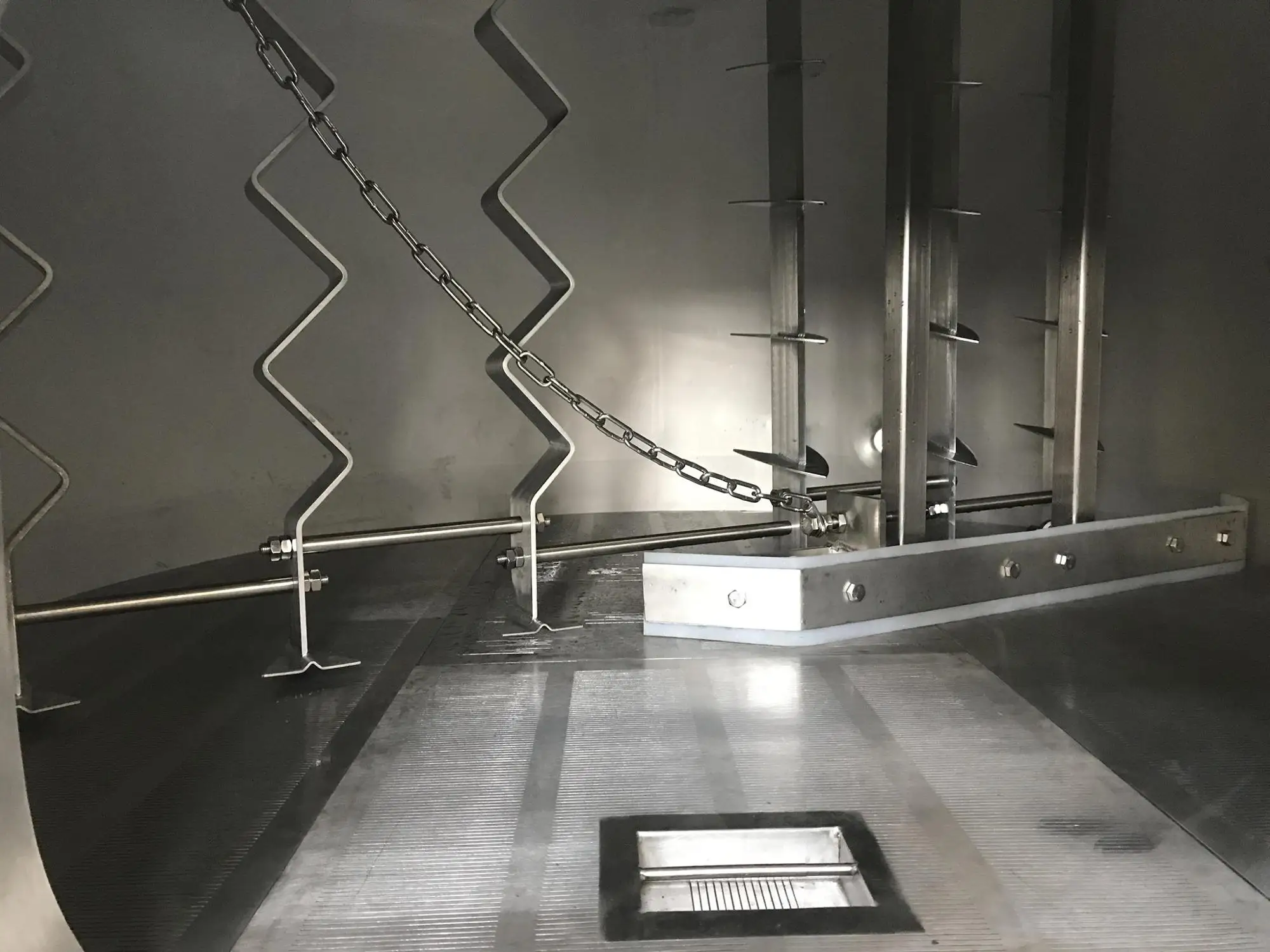 4.Mechinical agitation& Raker: at the top stirring. High power, low speed to ensure complete worse layer.
