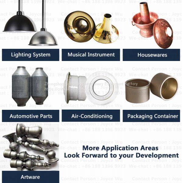 Our spinning equipment suitable for iron, aluminum, copper and other metal spinning parts and tube processing, widely used in lighting, handicrafts, furniture, automotive and other industries. The tool broad