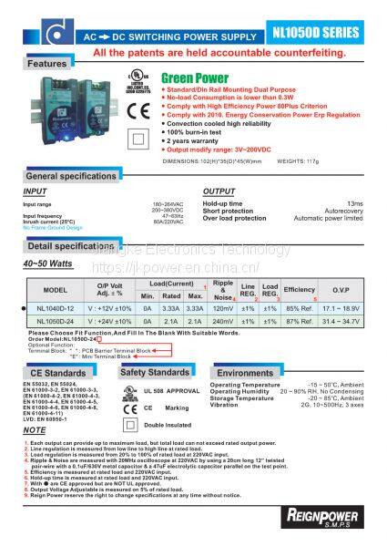 REIGNPOWER NL1050D-24/50W24V2.1A SWITHING POWER SUPPLY DIN RAIL