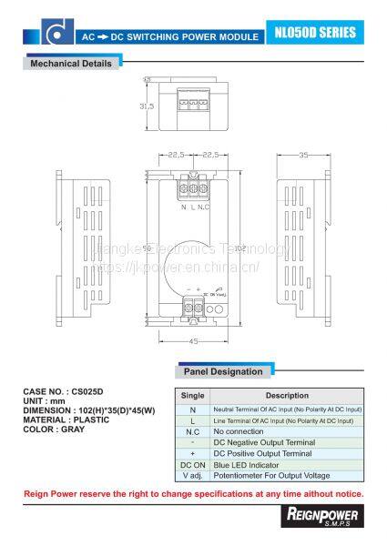 Home > Products > Switching Power Supply > REIGNPOWER NL1050D-24/50W24V2.1A SWITHING POWER SUPPLY DIN RAIL