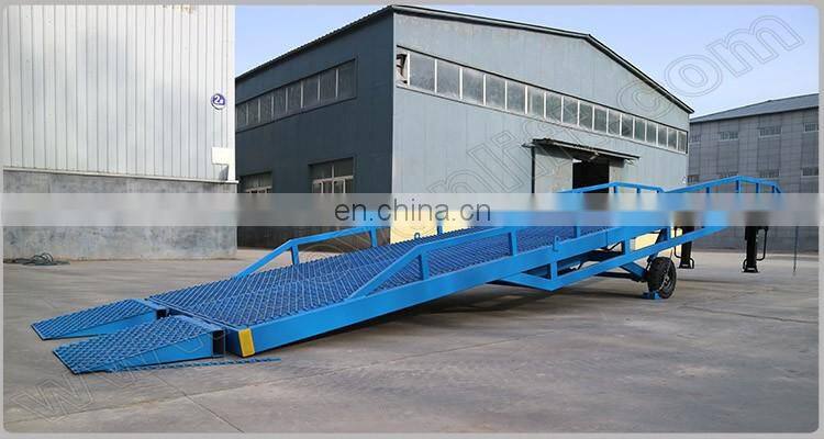 The 7LYQ Shandong SevenLift design foldable folding trailer floor yard ramp is the special auxiliary equipment used for loading and unloading of goods which is widely used in warehouse, station, wharf, warehousing logistics base, postal transportation, logistics distribution etc. Its height can be adjusted with the different heights of lorries. Some transport vehicles like forks can directly move into the wagon box with goods in using it, and only need one person operating.