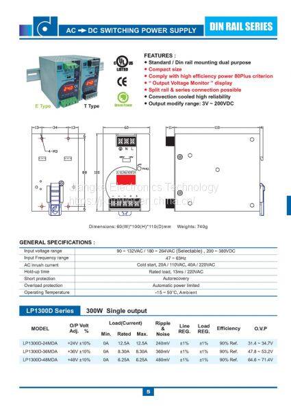 LP1300D-48MDA/300W48V6.25A REIGNPOWER SWITHING POWER SUPPLY DIN RAIL DISPLAY