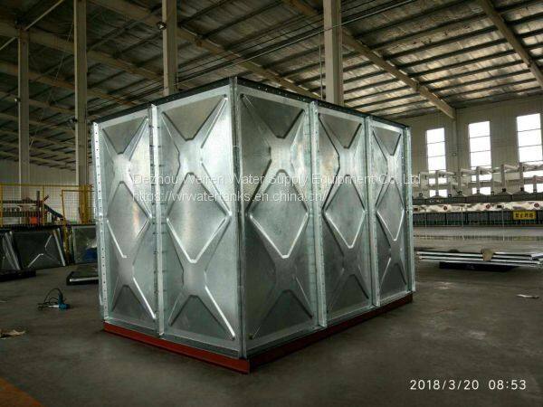 Hot dip galvanized steel water tank is anti-corrosion, anti-aging, no distorsion, no infiltration and leakage. Tank is easy to clean and conveniently to install and assemble. It can storage not only hot water, but also cold water, and has a better shockproof and shock resistant ability.