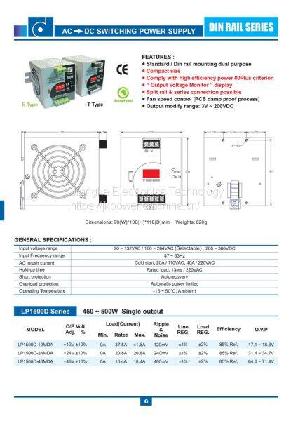 Home > Products > Switching Power Supply > LP1500D-48MDA/500W48V10.4A REIGNPOWER SWITHING POWER SUPPLY DIN RAIL DISPLAY