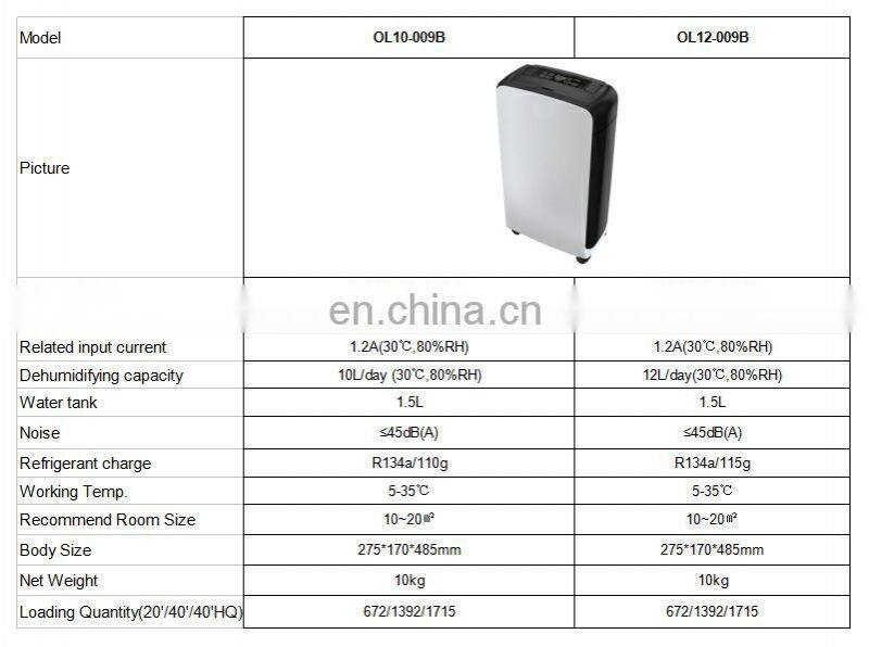 Home > Products > All products > OL12-009A LED Digital Display Auto Shutoff Home Dehumidifier With Air Purifying Function and Continuous Drainage