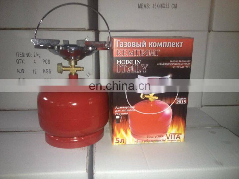 JG Ukraine 2kg LPG Gas Cylinder With Gas Burner,Propane Gas Cylinder With Copper Valve,Refillable Camping LPG Gas Cylinder