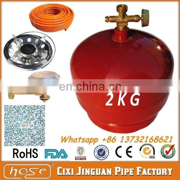 FACTORY SUPPLY 2KG LPG GAS CYLINDER, PORTABLE EMPTY LPG GAS CYLINDER WITH LPG GAS CAMPING BURNER STOVE FOR NIGERIA KENYA GHANA