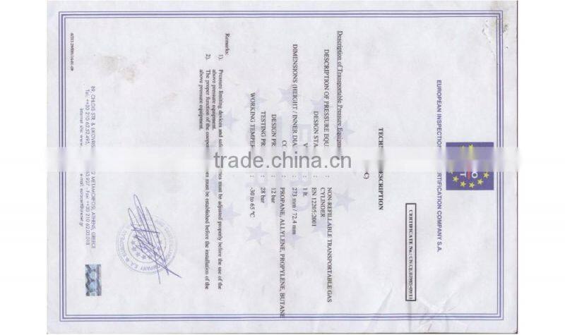 CE and TPED certificate.