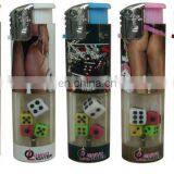 Plastic Advertisement Lighter With Mahjong Dice Toy Inside Lighter