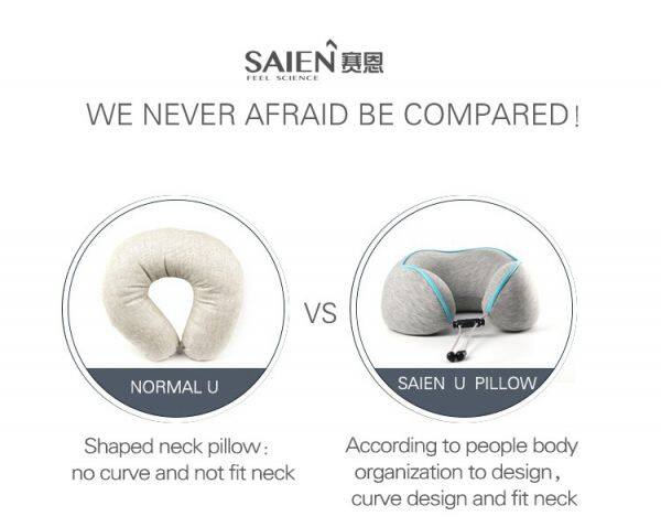 The U-shaped travel neck pillow supports your head and neck because your weight and body temperature create the perfect shape for your individual needs.