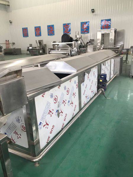 The vegetable washer material falls into the water, and the material is stirred and washed by the water tumbling in the tank body. The heavy dirt such as sediment on the material is separated and falls into the sedimentation zone below the filter screen, and the material is gradually moved to the conveyor network under the push of water. The belt is lifted out of the inner tank body, and then sprayed and cleaned to wash the material twice and enter the following process. The rinsed rinse is intercepted by a filter. During the work, the inlet pipe and the spray pipe are always supplied with water, so that the sewage in the tank is gradually replaced.