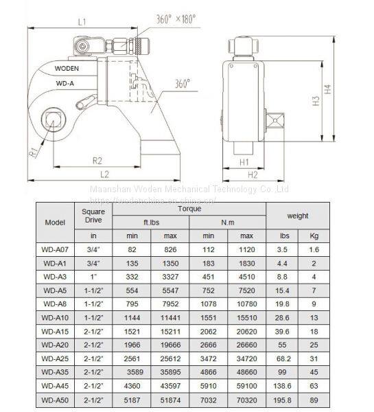 Square Drive Hydraulic Torque Wrench in Wodenchina,good Quality,WD-A50series, 70320Nm