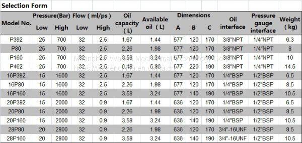 | Model Number | 16P160 1600bar 3.24L oil available | Type | Other, hydrulic hand pump |